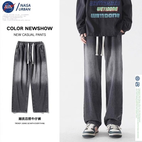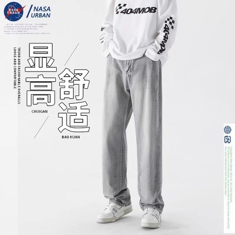 NASA联名牛仔裤男潮牌薄款美式复古休闲春秋百搭长裤直筒裤