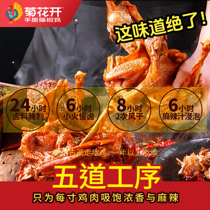 菊花开手撕藤椒鸡风干鸡干香麻辣