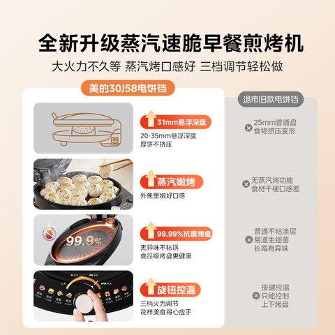 美的电饼铛,家用双面加热薄饼机煎饼机全自动新款电煎锅官方正品。