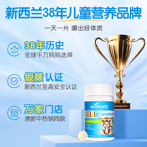 儿童专享+免疫支持+60粒装!!助力成长!增强体质!科学配方!!源自纯净新西兰,守护宝贝每一天!! 到手价:394.35,淘金币15元后379.35,折189.68/件,叠消费券165.97/件 赠[\u1f381]:乳铁蛋白牙膏
