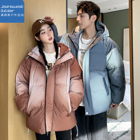真维斯户外运动新款渐变情侣冬季港风潮牌学生连帽加厚外套棉服潮