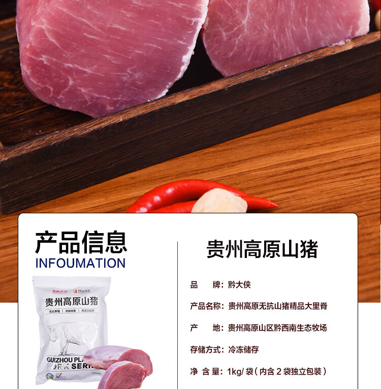 黔大侠贵州高原无抗山猪里脊肉2斤火锅食材小酥肉肉丝瘦肉猪肉糖醋里脊
