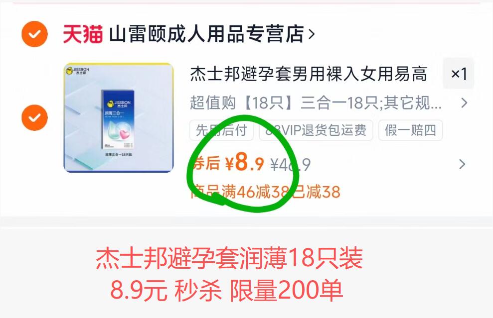 0.4/只,库存不多速度❗ 杰士邦避孕套18只装💰8.9 / AC66/