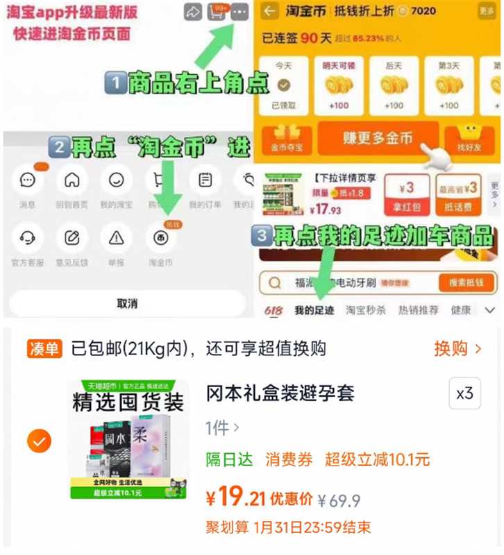 0.9元/片的冈本避孕套 冲‼ - 冈本超薄避孕套共60片💰57.6 ☀88拍三件+叠淘金币才成立 - 商品右上角3个点,选淘金币 再选 我的足迹-找到商品拍下 / AC66/