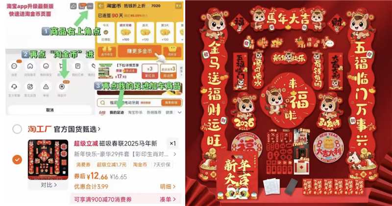 1磁吸春联马年对联29件套💰12 这个挂门上,磁吸窽不留痕😂 - 桃寳打开口令,弹礼金领取了 商品右上角3个点,选淘金币 再选 我的足迹-找到商品拍下 / AC66/