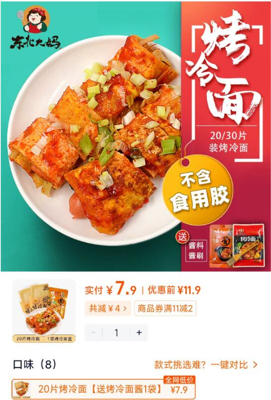 1速度烤冷面有补贴,好价‼ - 烤冷面20片+赠酱💰7.9 【东北大妈旗舰店】 - 很简単哈,小白都可以做的 线下七八块/个 咱才0.4/片😂 挺好吃,还有成就感 还省钱 / AC66/