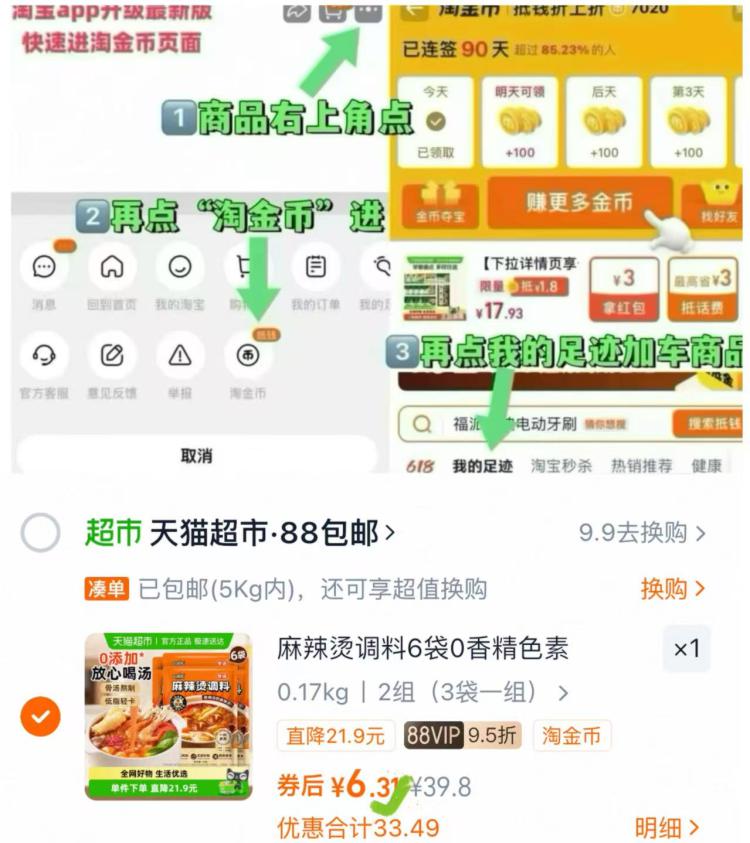 1猫超部分地区可用3虹包 / AC66/ - 吉香居榨菜丝组合560g💰5.5 - 淘金币页面,进我的足迹加购 88叠金币+3福袋价格才成立 / AC66/