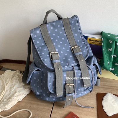 "喜欢 今天"韩国小众复古日系波点双肩包 大容量上课书包口袋背包