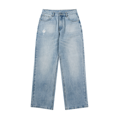 "NO LOGO"2021M闪电裂纹冰蓝色微喇水洗牛仔裤男秋季宽松cleanfit