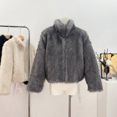 "晚宴千金"芬兰进口sagafurs双色晕染整皮狐狸毛 立领皮草外套