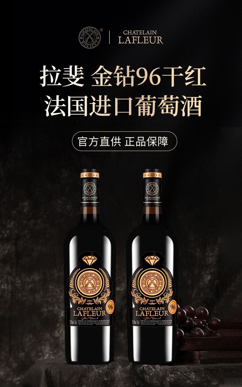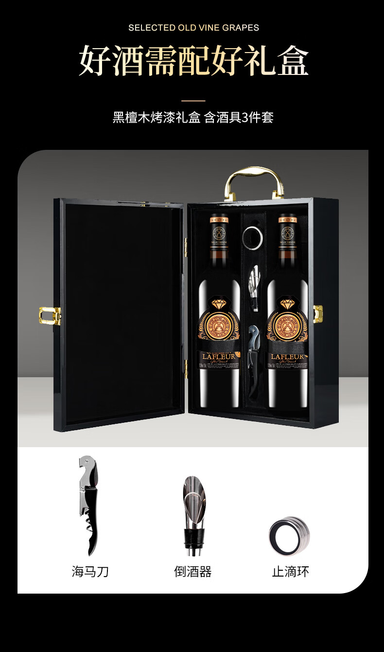 拉斐【红酒礼盒】法国原瓶进口红酒拉斐干红葡萄酒750ml*2瓶 金钻96礼盒装