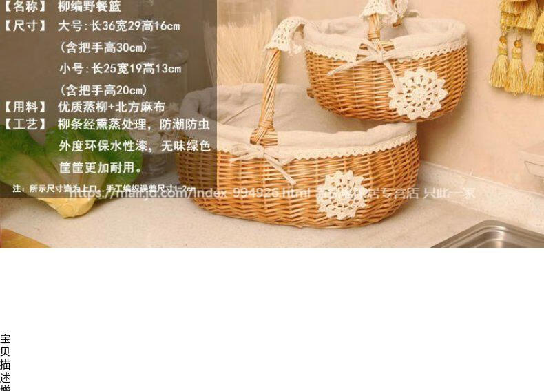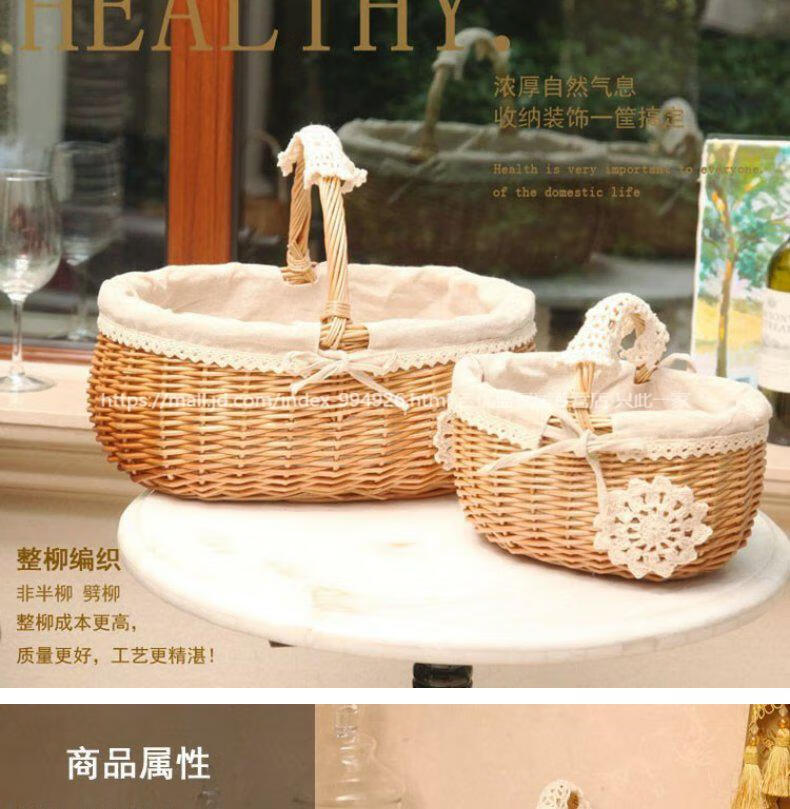 赛乐透菜篮水果篮食物存放储物儿童玩具小篮子手提篮竹篓子床头筐编织小 原木色绿格布小号JUW