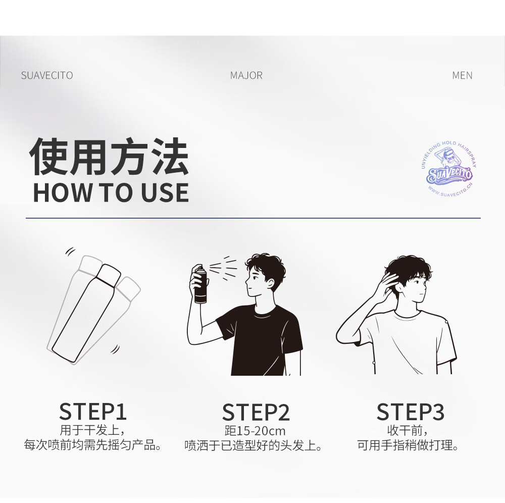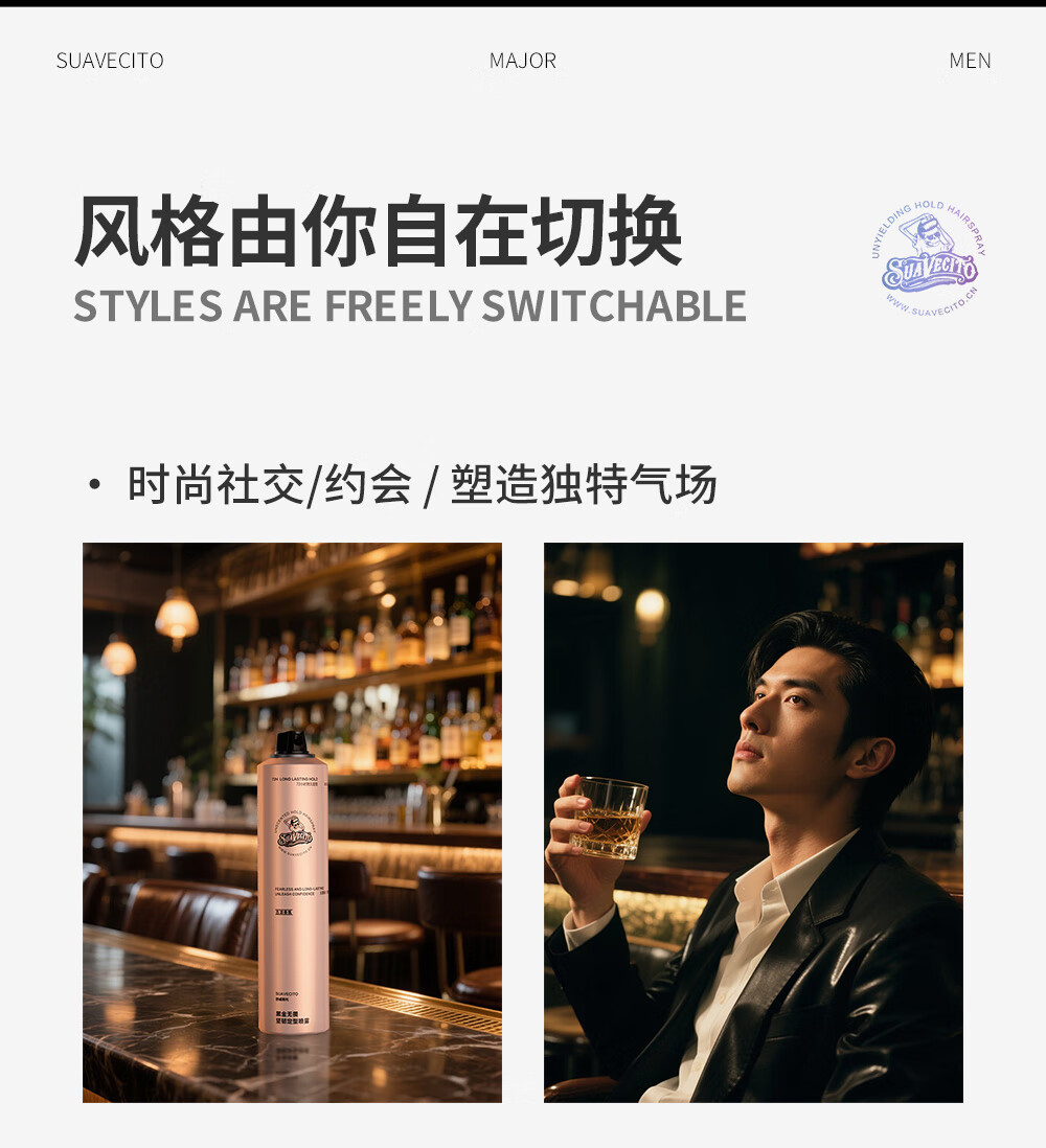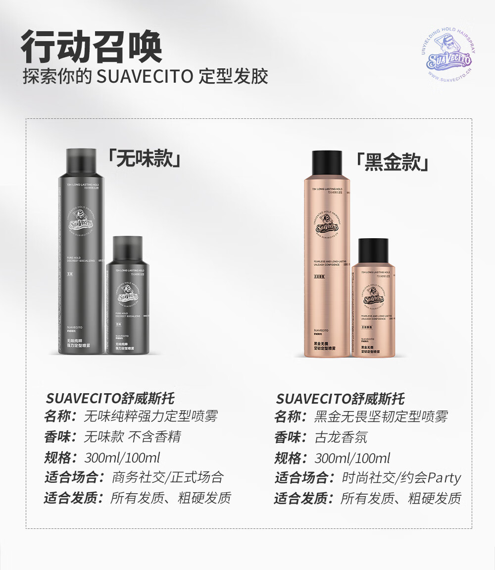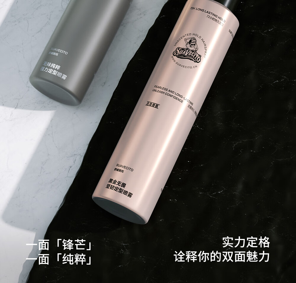 SUAVECITO舒威斯托定型喷雾 骷髅头发胶男士 强力蓬松速干清香持久不塌干胶 定型喷雾【黑金无畏】300ml