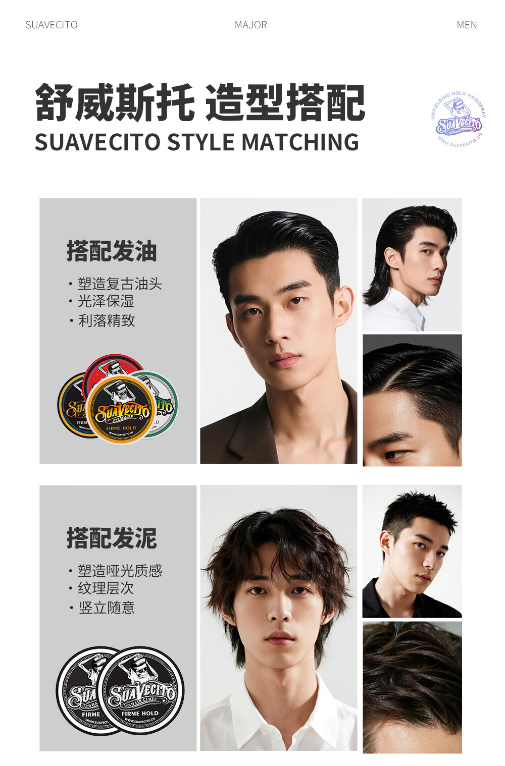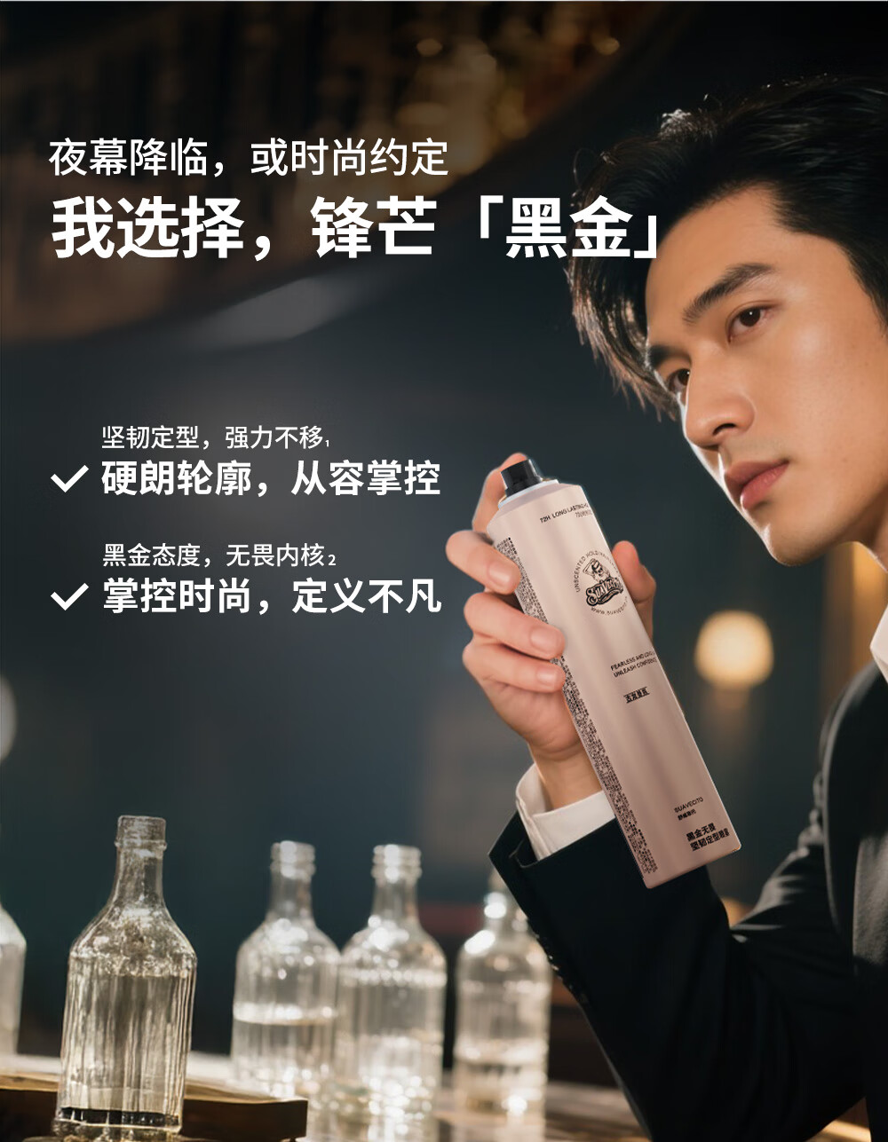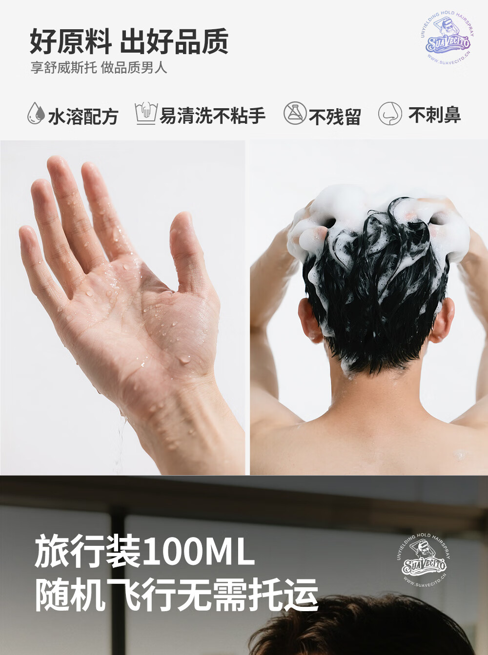 SUAVECITO舒威斯托定型喷雾 骷髅头发胶男士 强力蓬松速干清香持久不塌干胶 定型喷雾【黑金无畏】300ml