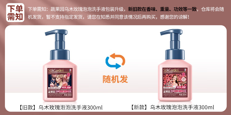 蔬果园泡沫洗手液 泡泡洗手液抑菌杀菌护手滋润玫瑰香氛 儿童大人通用 【尝鲜装】抑菌洗手液300ml