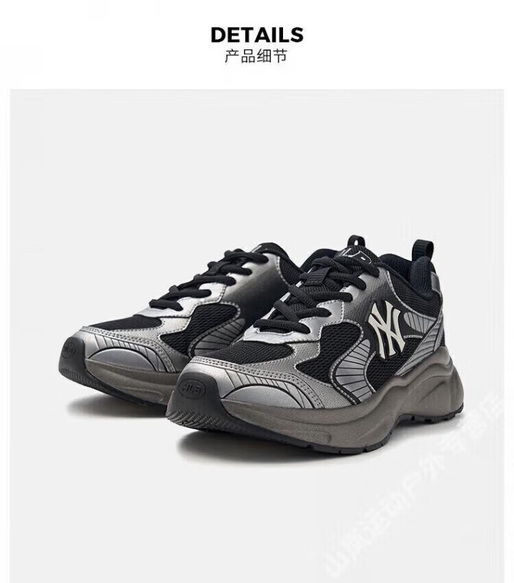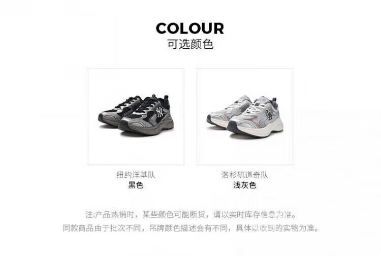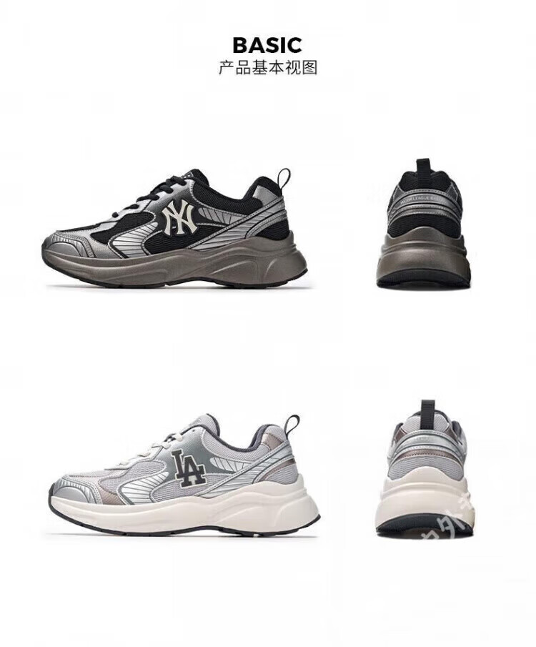 MLB虞书欣同款男女复古跑鞋经典增高休闲鞋25夏季新款透气厚底运动鞋 洛杉矶道奇队/浅灰色 45