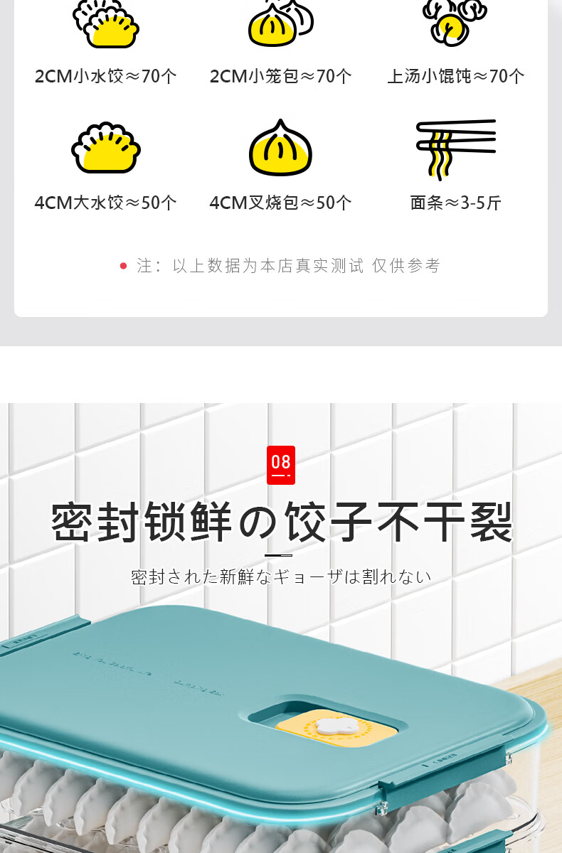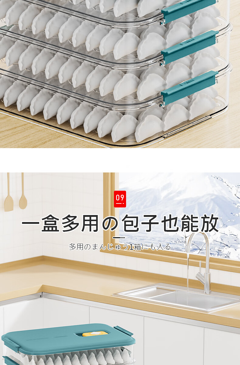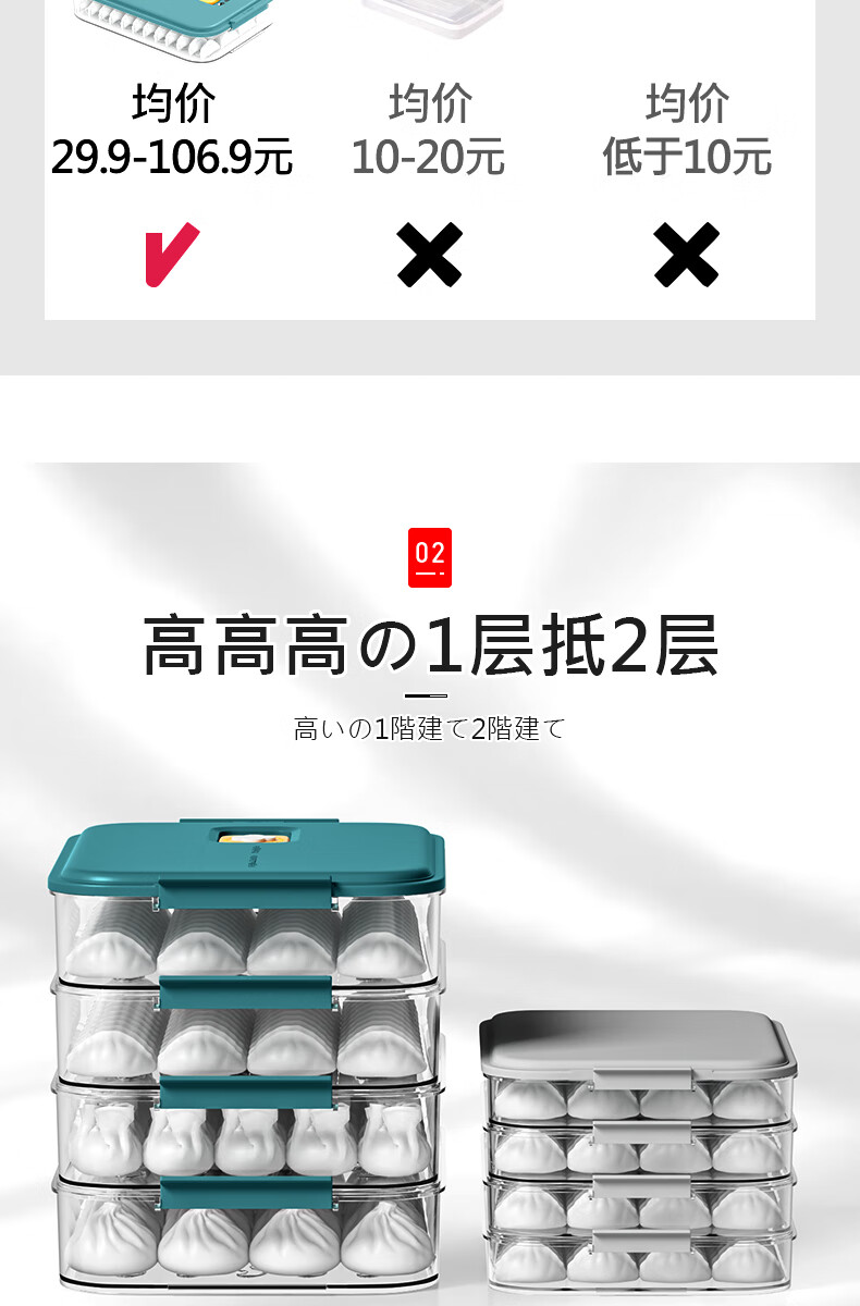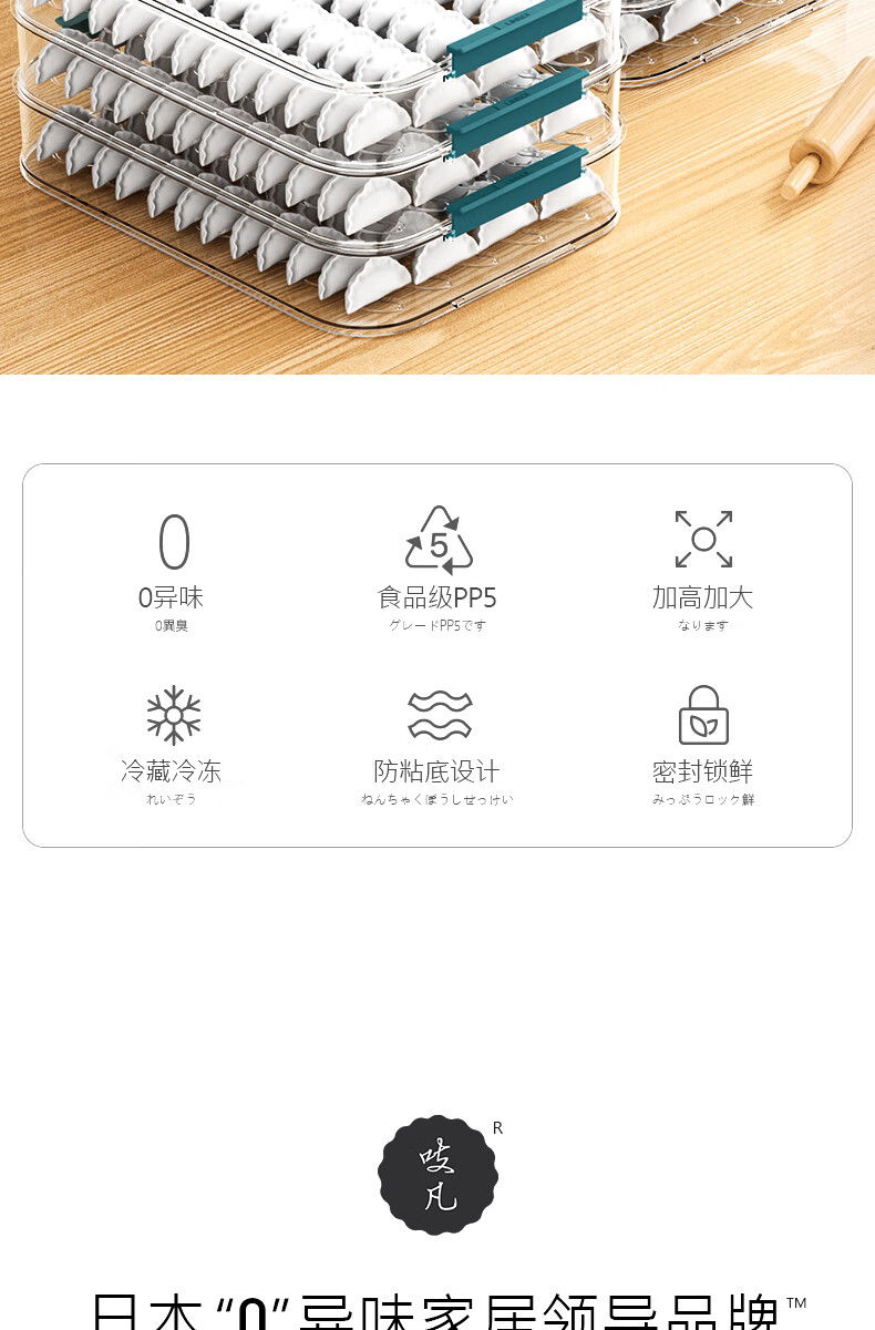 吱凡日本饺子收纳盒冰箱用盒子冷冻盒子食品级水饺馄饨速冻保鲜专用盘 奶白【2层1盖】约100个饺子