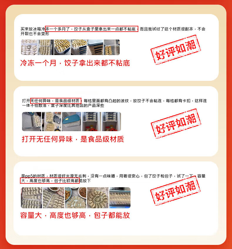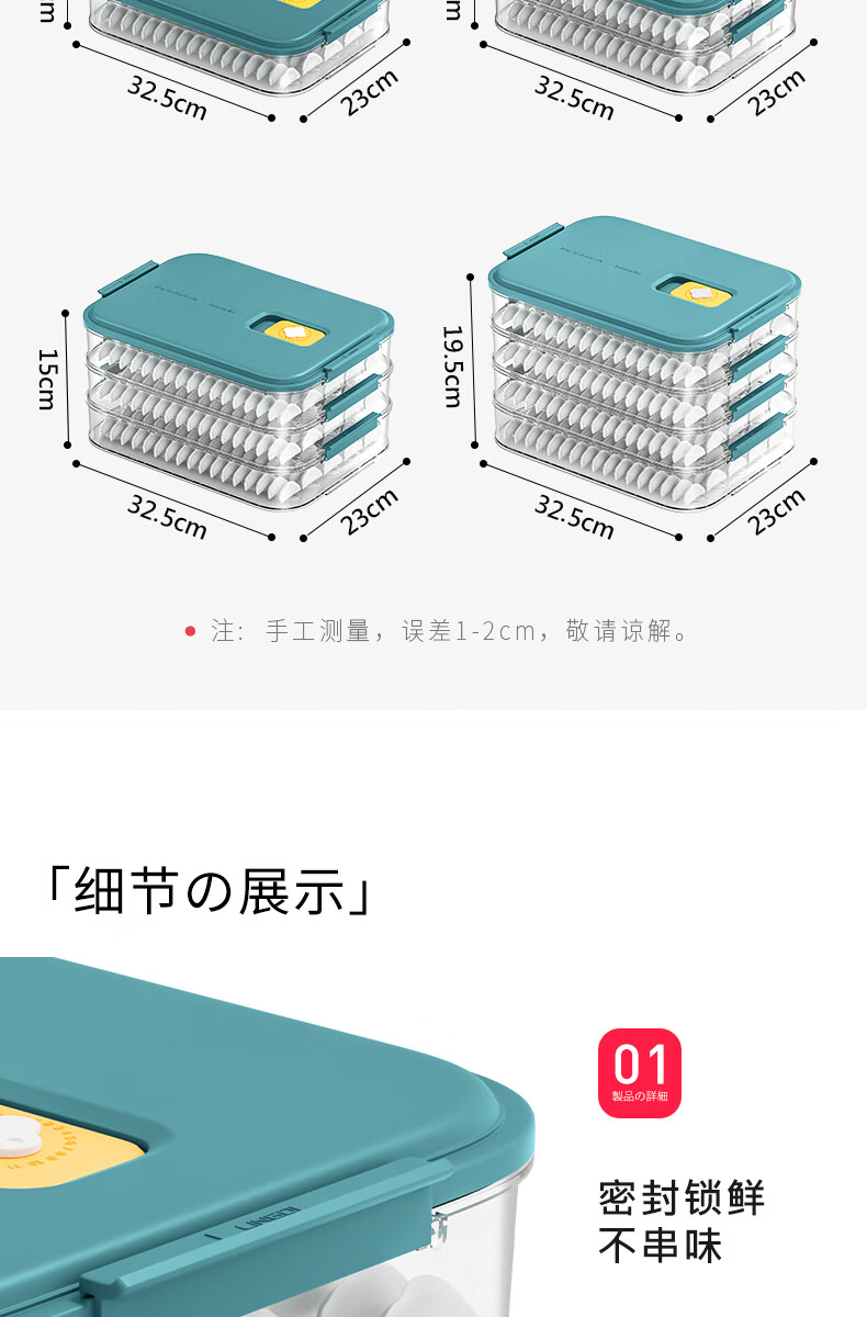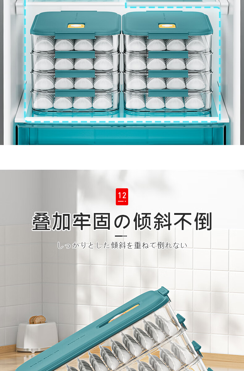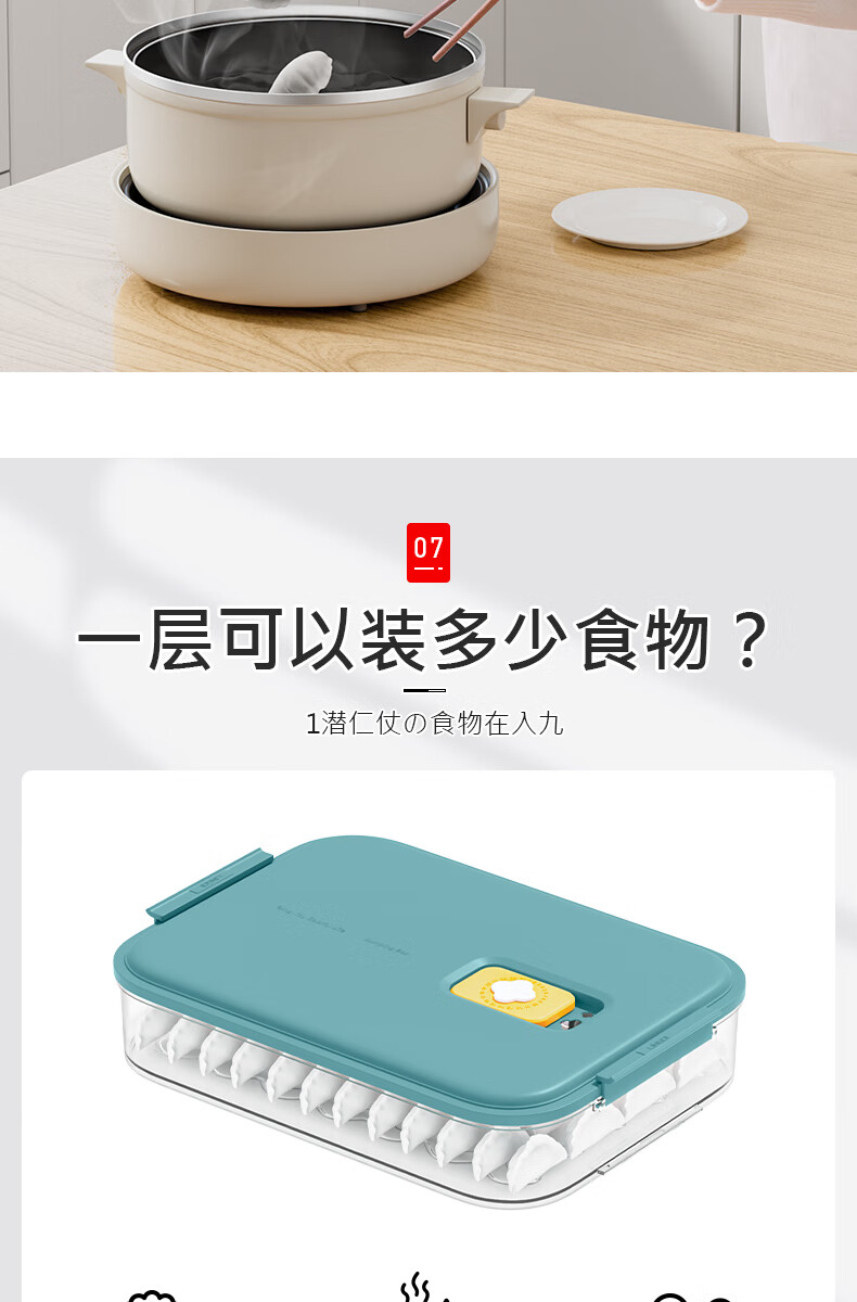 吱凡日本饺子收纳盒冰箱用盒子冷冻盒子食品级水饺馄饨速冻保鲜专用盘 奶白【2层1盖】约100个饺子