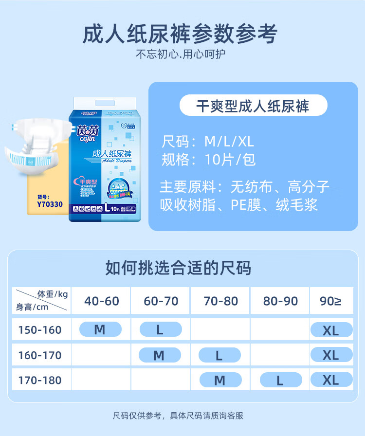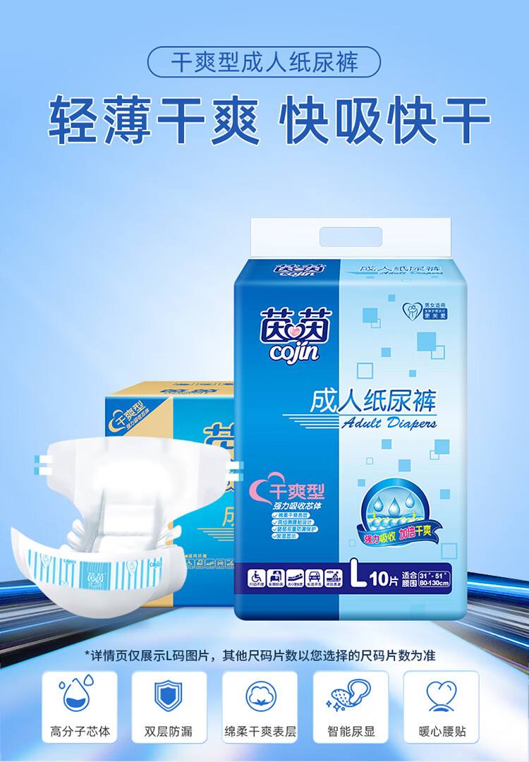 茵茵(cojin)干爽型成人纸尿裤老年人产妇尿不湿超薄透气强劲吸收芯男女通用 干爽型M码 90片【多买划算】