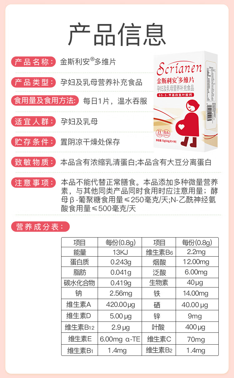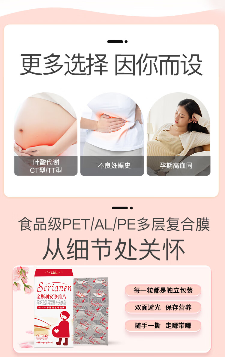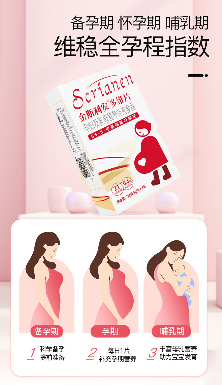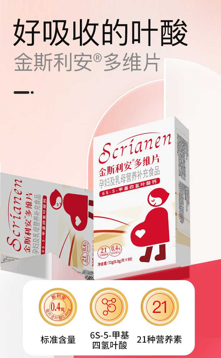 斯利安活性叶酸 6S-5-甲基四氢叶酸钙 无碘配方120粒联名定制礼盒送礼