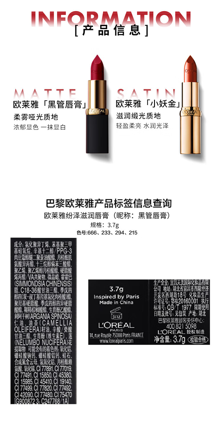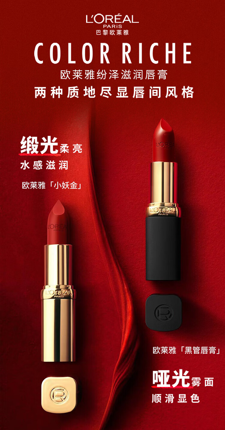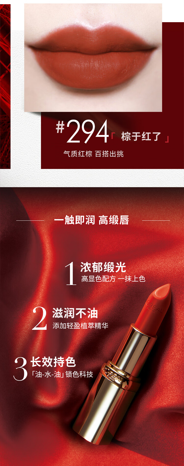 欧莱雅小妖金口红161轻吻豆沙缎光滋润素颜唇膏圣诞礼物送女友